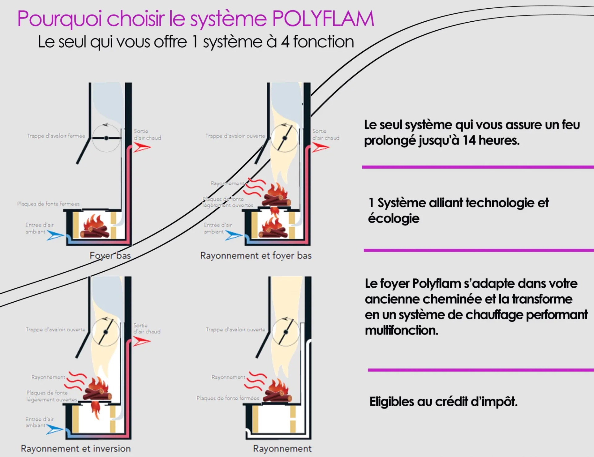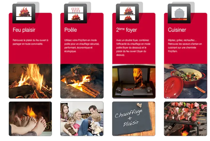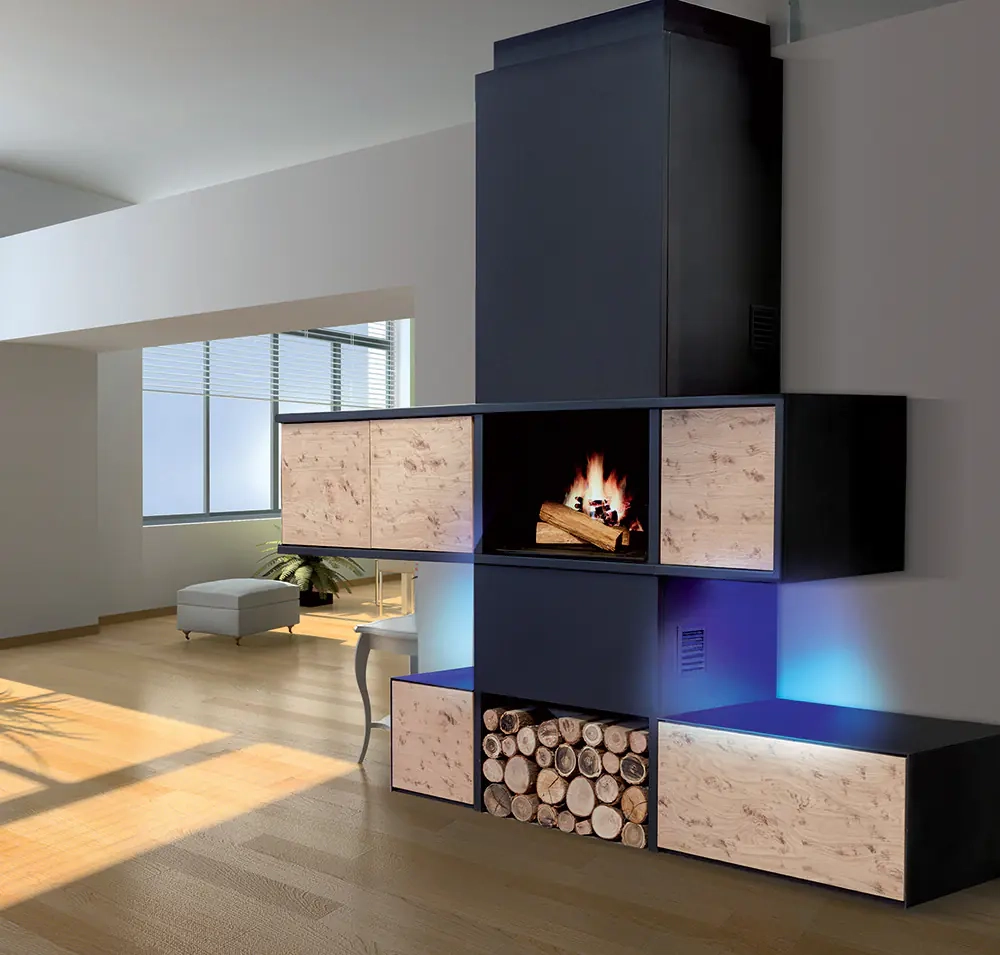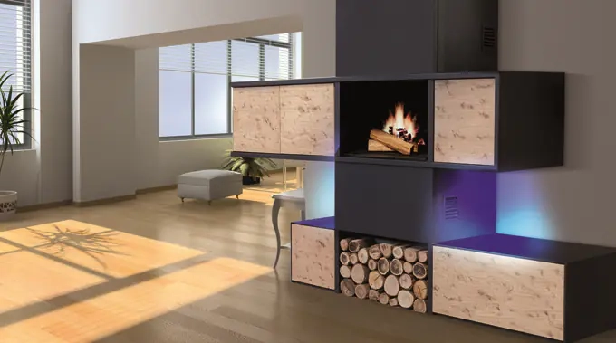 L’Ottawa est une cheminée avec système Polyflam parfaite pour être installer dans la pièce maîtresse de vie. Elle est composé de rangement porte avec étagères en système sans poignée qui peut être décliné sur la cuisine dans la même finition et également agrémenter d’un système Polyflam. Le système Polyflam, vous permettra d’exploiter les calories de votre cheminée, tout en conservant votre plaisir de la flamme.